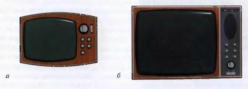Сравним композицию передних панелей двух телевизоров (рис.7.4, а, б). В обоих случаях панель состоит из двух частей: большей – кинескопа и меньшей – панели с органами управления [2].