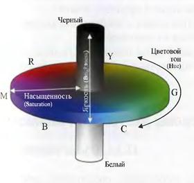 Рис. 12.3 Смешение цветов: а – в модели СМY; б – в модели НSВ [1]