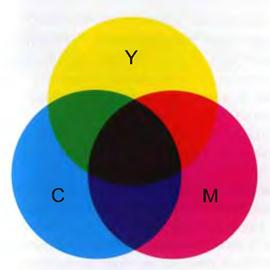 При смешивании двух субтрактивных составляющих результирующий цвет затемняется, а при смешении всех трех должен получиться черный цвет.