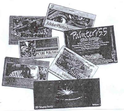 Рис. 12.10. Титульные страницы дизайнерских программ Photo-Paint, Adobe Photoshop, Picture Publisher, Painter, Adobe Illustrator, CorelDRAW, 3D Studio MAX