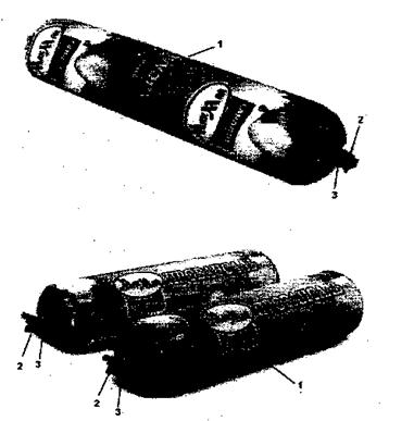 Такую упаковку хорошо использовать сразу иначе майонез может разлиться по холодильнику и по самой упаковки. Поэтому в предлагаемом новом решении упаковка более экономична и удобна в использовании (патент UА № 52210, 2010 г.). На рис. 13.3. приведен эскиз указанной конструкции на примере ее применения в упаковки с майонезом. Упаковка выполнена в форме тубы 1 из пленки, сваренной в месте напуска. Туба 1 имеет хвостовики 2 зажатые зажимщиком-клипсами 3, выполненными например из проволоки. Изготовление упаковки, которая заявляется, осуществляется следующим образом. С помощью машиныц формуют и сваривают пленку из рулона в бесконечный рукав, набивают его вязким пищевым продуктом и забивают зажимщиками-клипсами, а после этого разделяют один от другого готовые сформированные упаковки с вязким пищевым продуктом.