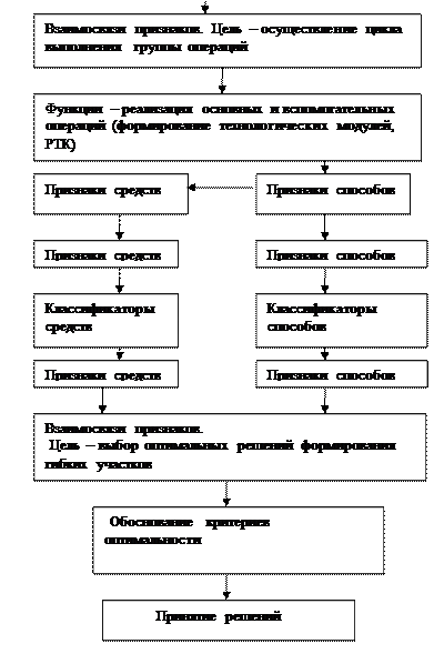 Однако при необходимости можно предусмотреть дополнительную ступень средств и способов получения соответствующего множества заготовок. Задача может быть расширена аналогичным образом и в другую сторону, и тогда она может оканчиваться поиском оптимальных компоновочных решений не для технологических модулей, а для более крупных подразделений (участка, цеха, предприятия).