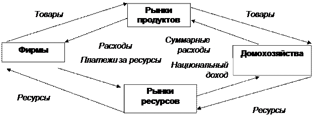 Из модели видно, каким образом рынок регулирует натурально-стоимостные потоки. Домохозяйства и фирмы встречаются дважды – на рынке ресурсов и рынке продуктов.
