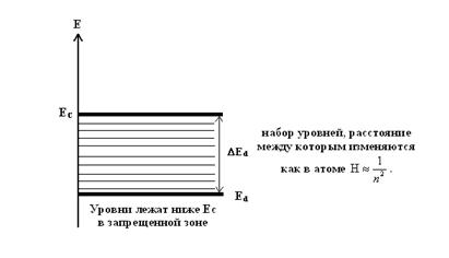 Такие доноры образуют неглубокий (мелкий) уровень энергии Ed вблизи дна зоны проводимости Ес. В связи с этим эти доноры называются мелкими донорами.