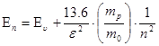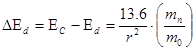Для донора аналогично уравнение Шредингера для атома водорода, если в нем заменить m0 на mn, а заряд на