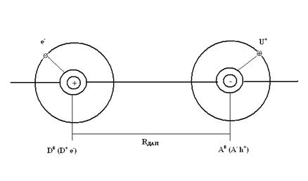 Доноры и акцепторы, расположены в соседних узлах, в результате кулоновского взаимодействия образуют комплекс – донорно-акцепторную пару (ДАП).