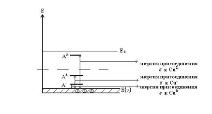 А-: Cu0 + e = Cu- - образуется уровень вблизи EV и дырка в валентной зоне
