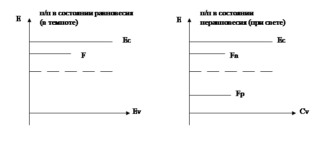 Fn – электронный квазиуровня Ферми, Fp – дырочный квазиуровень Ферми.