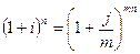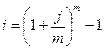 Обозначим эффективную ставку через i. По определению множители наращения по двум ставкам (эффективной и номинальной при m-разовом начислении) должны быть равны друг другу
