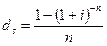 Приведенное равенство предполагает, что начальные и наращенные суммы при применении двух видов ставок идентичны. Решение приведенного выше равенства дает следующие соотношения эквивалентности