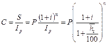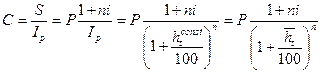 Предпоследняя формула по сравнению с последней содержит один дополнительный член, которым при незначительных величинах i и h можно пренебречь. Если же они значительны, то ошибка (не в пользу владельца денег) станет весьма ощутимой.