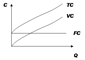 где FC – постоянные издержки, величина которых в краткосрочном периоде не изменяется с увеличением или сокращением объема производства (издержки связанные с использованием зданий, сооружений, машин и производственного оборудования, арендой, капитальным ремонтом, а также административные расходы).