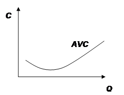 График AVC показывает, что кривая средних переменных издержек имеет U -образную форму: первоначально они снижаются, ибо каждая дополнительная единица используемого труда приносит больший предельный продукт (MPL), а, значит, производительность труда работника растет. По мере большего использования труда при постоянном объеме капитала, производительность труда падает (согласно закону убывающей отдачи факторов производства) и соответственно AVC возрастают.