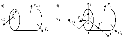 на перпендикулярные оси в плоскости площадки (рис. 1.4, б) называются касательными напряжениями по направлению соответствующих осей и обозначаются t´ и t´´. Если через ту же самую точку К провести другую площадку, то, в общем случае будем иметь другое полное напряжение. Совокупность напряжений для множества площадок, проходящих через данную точку, образует напряженное состояние в этой точке.
