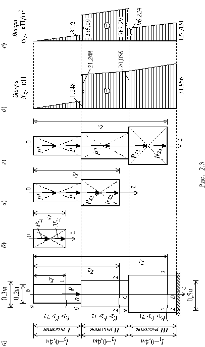 , заменяющую действие отброшенной нижней части бруса на верхнюю рассматриваемую (рис. 2.3, б). Составив уравнение равновесия рассматриваемой верхней части колонны по оси z, получим: