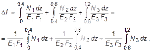 Так как величины определенных интегралов равны площадям, очерченным соответствующими подынтегральными функциями, то для вычисления перемещений D li достаточно вычислить площади эпюры Nz на каждом из этих участков и разделить их на Ei Fi. Следовательно,