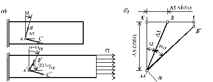 Рассмотрим прямой угол АВС (рис. 2.8, а), образованный отрезками АВ и АС, в недеформированном состоянии.
