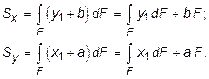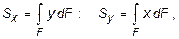 где нижний индекс у знака интеграла указывает на то, что интегрирование ведется по всей площади сечения F. Каждый из этих интегралов представляет собой сумму произведений элементарных площадок dF на расстояние до соответствующей оси (x или y). Первый интеграл называется статическим моментом сечения относительно оси x, а второй - относительно оси y.