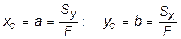 Ось, относительно которой статический момент равен нулю, называется центральной. Точка С (xC , yC) пересечения центральных осей называется центром тяжести сечения в системе координат (x, y) и определяется из (3.4):