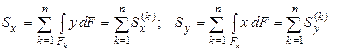 - статические моменты k -той области относительно осей x и y. Следовательно, статический момент составного сечения равен сумме статических моментов составляющих областей.