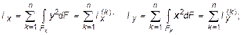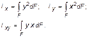 Первые два интегральных выражения называются осевыми моментами инерции относительно осей x и y, а третье - центробежным моментом инерции сечения относительно осей x, y.
