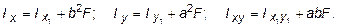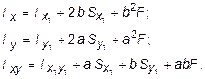 Рассмотрим, как изменяются моменты инерции сечения при параллельном переносе координатных осей x и y (см. рис. 3.2). Преобразуя формулы (3.7) с учетом выражения (3.2), получим: