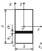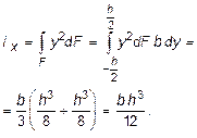 Определим осевые моменты инерции прямоугольника относительно осей x и y, проходящих через его центр тяжести (рис. 3.4). В качестве элементарной площадки dF возьмем полоску шириной b и высотой dy (рис. 3.4). Тогда будем иметь: