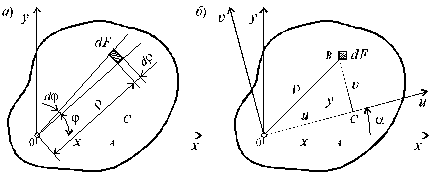 Для систем, рассматриваемых в полярной системе координат (рис. 3.5, а), вводится также полярный момент инерции: