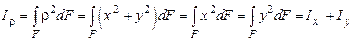 Так как оси x и y для круга равнозначны, то Ix = Iy =