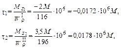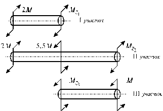 Подсчитаем теперь напряжения по участкам в зависимости от момента М: