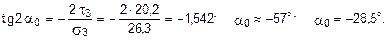 При отрицательном угле a0 откладываем его от нормали к сечению (площадке) по часовой стрелке и показываем положение главных площадок и направление главных напряжений (рис. 5.22).