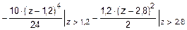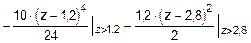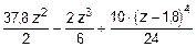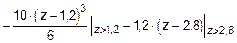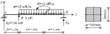 Здесь M 0 и Q 0 - момент и реакция в заделке (т.е. в начале координат). Знак ½ z > a означает, что слагаемое, после которого он стоит, нужно учитывать при z > a и не надо - при z £ a. Начальные параметры имеют значения: y 0 = 0; j0 = 0; M 0 = -37,8 кН×м, R 0 =