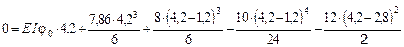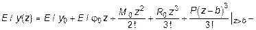 В данном выражении неизвестно j0. Из условия закрепления балки при z = b + c + e имеем, что y = 0. Вычисляя прогиб на правом конце балки и приравнивая его к нулю, получим уравнение для определения j0: