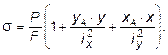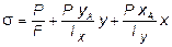 Таким образом, при внецентренном растяжении (сжатии) в поперечном сечении бруса возникает нормальная сила N z= P и изгибающие моменты Mx и My . Следовательно, на основании принципа независимости действия сил в произвольной точке В с координатами x, y нормальное напряжение s определяется следующим выражением: