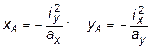 Можно решить и обратную задачу - определить координаты приложения силы Р при заданных отрезках аx и аy . Опуская простейшие выкладки, приведем окончательные выражения: