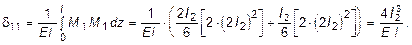 При вычислении D1 P было учтено, что эпюры М 1 и МP имеют разный знак, т.к. вызывают растяжение разных волокон - об этом говорит отрицательный знак при D1 P . Кроме этого, криволинейный участок в эпюре МP был представлен как разность трапеции и параболического сегмента.