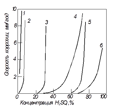 Рис. 8. Скорость коррозии различных металлов в кипящей серной кислоте: