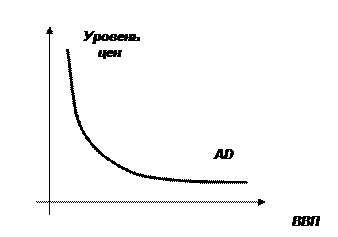 Модель совокупного спроса графически может быть представлена в виде кривой с отрицательным наклоном, которая характеризует зависимость между объемом покупаемого реального ВВП и уровнем цен.