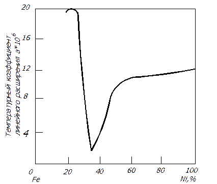 Немагнитные сплавы с заданными температурными коэффициентами линейного расширения характеризуются средними значениями a и низкой магнитной восприимчивостью. К числу этих сплавов относят 75НМ (никельмолибденовый), 80НМВ и 70НВД (никельмолибденвольфрамовый и никельвольфрамовый, легированный медью до 1…2 %).