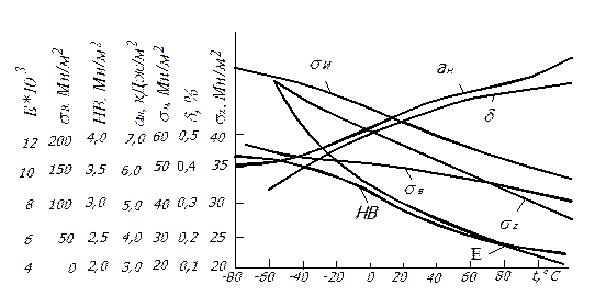 Рис. 47. Влияние температуры на механические свойства волокнитов