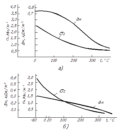 Рис. 57. Влияние температуры на механические свойства пенопластов: