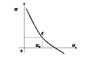 Рис. 47. кривая Филипса. В точке ε уровень безработицы соответствует уровню полной занятости (uЕ = 5%)