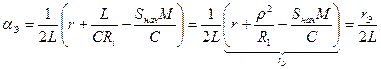 – коэффициент затухания эквивалентного контура с учетом собственных потерь r и потерь, вносимых в контур за счет выходного сопротивления транзистора Ri и ОС.