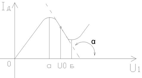 γ – угол наклона касательной к кривой iд=f(u) в рабочей точке U0.