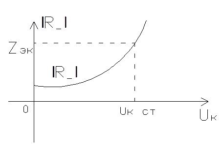 Режим устойчив, если в точке пересечения горизонтали Zэкр кривая |R_(Uk)| имеет положительный наклон.