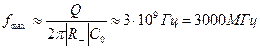 Преимуществом туннельного диода являются весьма малое по абсолютной величине отрицательное сопротивление (от 10 до 100 Ом). Несмотря на относительно большую собственную емкость диода, условие самовозбуждения (*) выполняется в весьма широком диапазоне частот, вплоть до СВЧ. Так при добротности контура Q=50, C0 = 50пФ и |R_| = 5Ом предельная частота генерации: