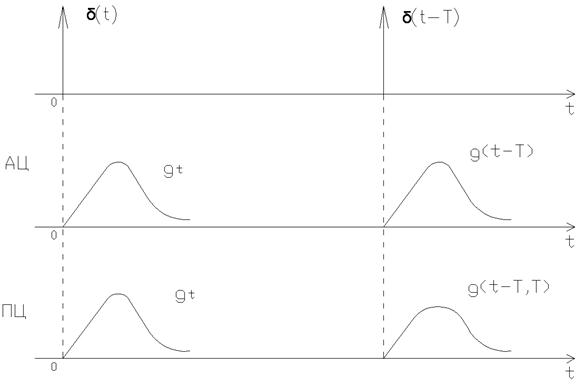 Воздействие представляется совокупностью ∆-импульсов, находится отклик цепи на каждый δ-импульс и результат складывается. Отличие от анализа линейных цепей заключается в том что сама импульсная характеристика параметрической цепи изменяется во времени, то есть зависит от времени прихода на цепь δ-импульса.
