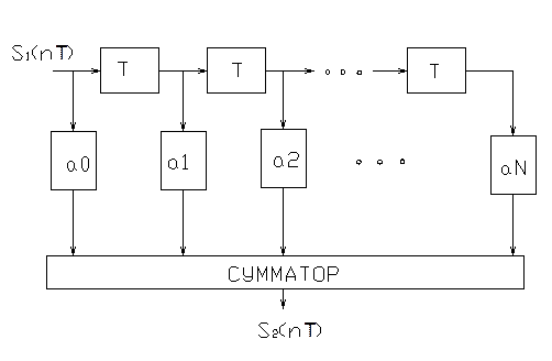 Другими словами дискретный фильтр должен обладать памятью, в которой хранятся N предыдущих отсчетов воздействия и отсчеты импульсной характеристики g(mT).