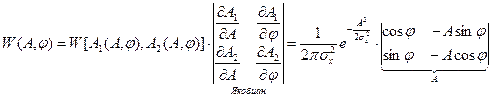 Найдем закон распределения огибающей W(A) и закон распределения фазы W(φ).