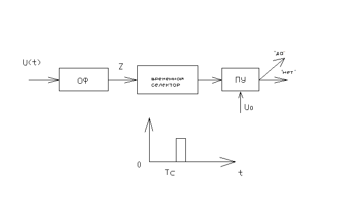 Структурная схема оптимизации обнаружителя полностью известного сигнала в фильтровом варианте может быть представлена так: